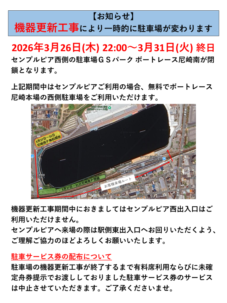 センプルピア西側駐車場一時閉鎖のお知らせ